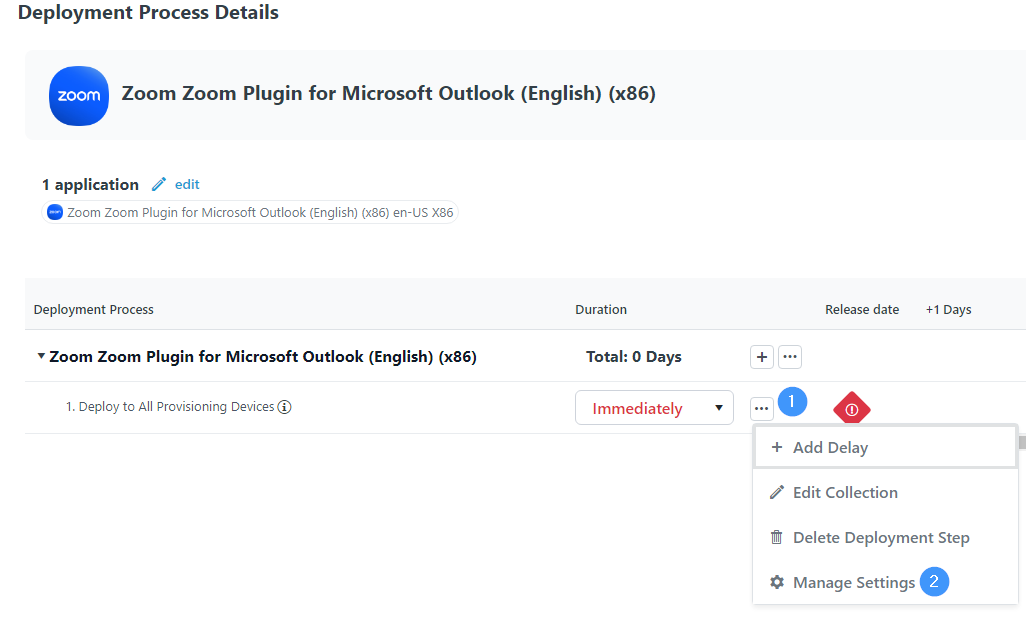 Click the ellipsis (...) to the right of a deployment step and select Manage settings