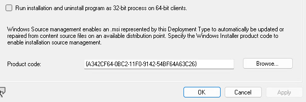 By default, many applications from Recast populate the MSI product code for Windows Source Management which in turn removes sourcelist registry keys that point to the local source files for an application such as Adobe Acrobat. Having the ability to not insert the product code in the application Source Management config would prevent this issue from occurring. We currently have to remove the product code from each application's Windows Source Managment before deployment which is time consuming.