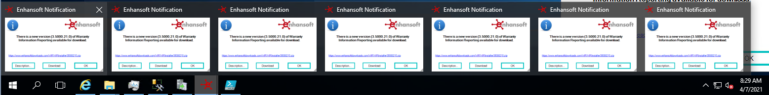 Currently the Enhansoft notification tool pops up over and over on my server to alert me that there are updated versions of the software. This should not happen. A better option would be a toast notification.