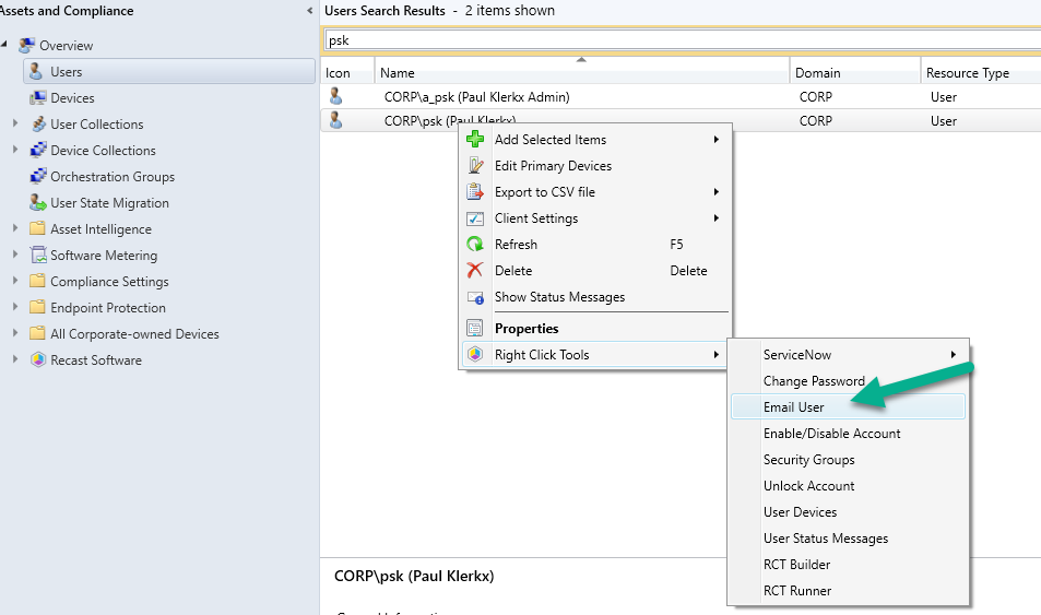 Email User doesn’t work for us as we use Config Manager console with “run as” to run as an admin account which has admin rights to everything, but which doesn’t have email access.